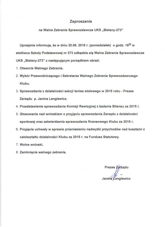 Zaproszenie na Walne VI 2016